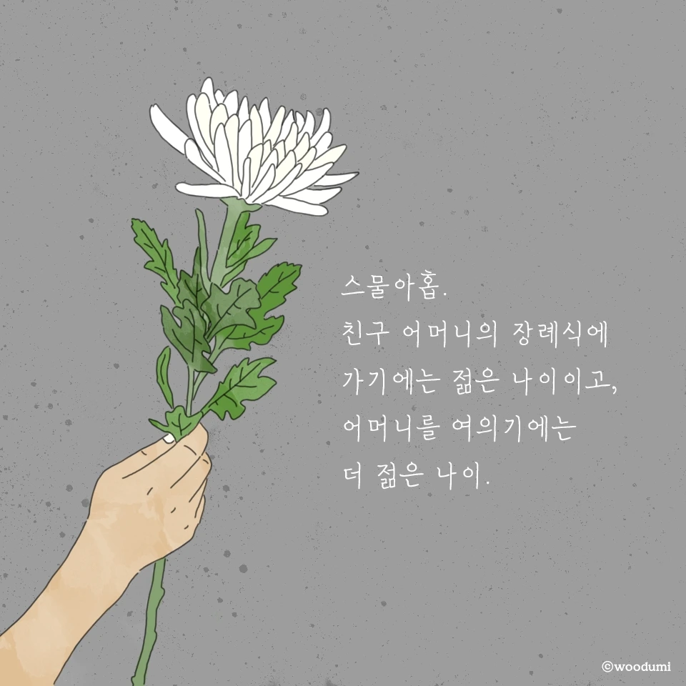 스키장을 갔다가 사우나를 하고 나오던 참이었다. 카톡을 열자 여러 개의 읽지 않은 카톡 중 단 한 사람 샬롯의 한마디 카톡이 내 눈에 꽂혔다. "듬지야 우리 엄마가 돌아가셨어". 어떤 보충 설명도 없이 단 한 문장으로 이루어진 그 말은, 심장을 요동치게 했다. 바로 전화를 걸어 샬롯의 목소리를 듣고, 장례식장 위치를 받고, 내일 당장 장례식장에 가겠노라고 대답했지만, 그때부터 흘러나오는 눈물을 주체할 수가 없었다. 나는 방금까지 스키장에서 남자친구와 즐거운 한때를 보냈는데, 샬롯이 겪었을 어제오늘의 충격과 슬픔을 도저히 짐작해볼 수가 없었기 때문이다.