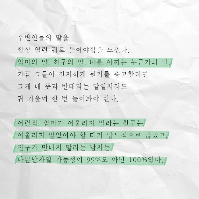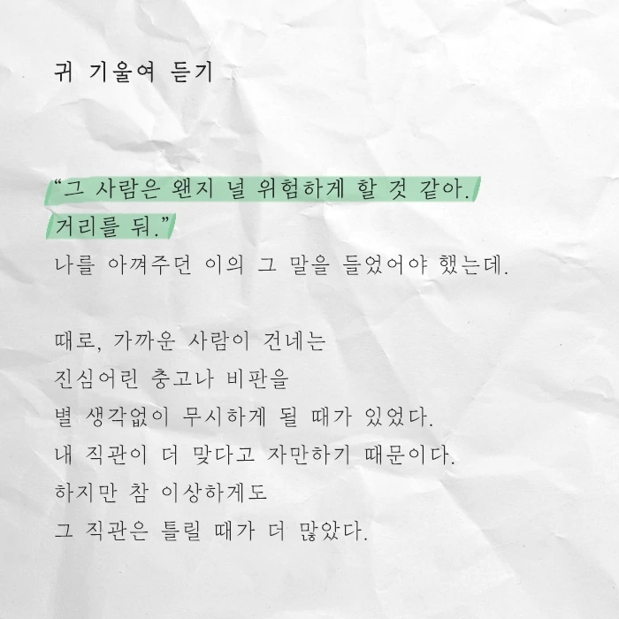 날 아껴주는 사람들의 말을, 귀 기울여 듣자