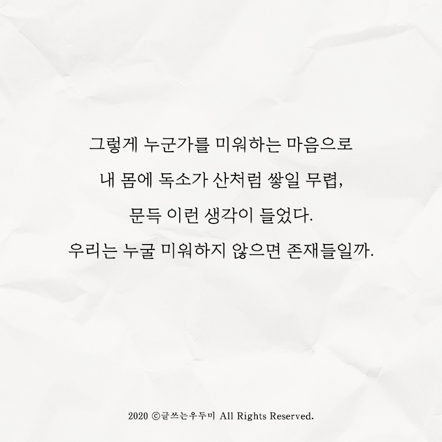 이번에도 평화가 위협받는다고 감지한 우리는 또다시 그 아이를 미워하기 시작했다. 끊임없이 험담했고, 제 발로 나가길 소망했고, 다른 누가 오든 그 아이보단 나을 거라 또 착각하면서.