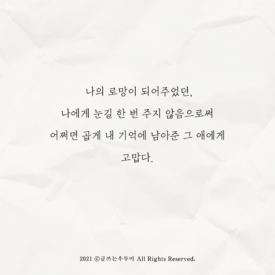 인터넷 소설이나 로맨스 영화처럼 꼭 이런 애들은 어디론가 훌쩍 떠나버린다. 그때 완전히 나는 포기했다. 나 혼자 시작해서 나 혼자 끝난 내 어린 첫사랑. 그래도 함께 주고받은 것이 없으니 크게 마음 아플 일은 없었던 건 다행이었을까.