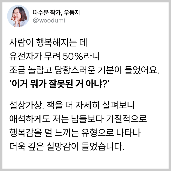나머지 절반은 내 힘으로 바꿀 수 있는 것.