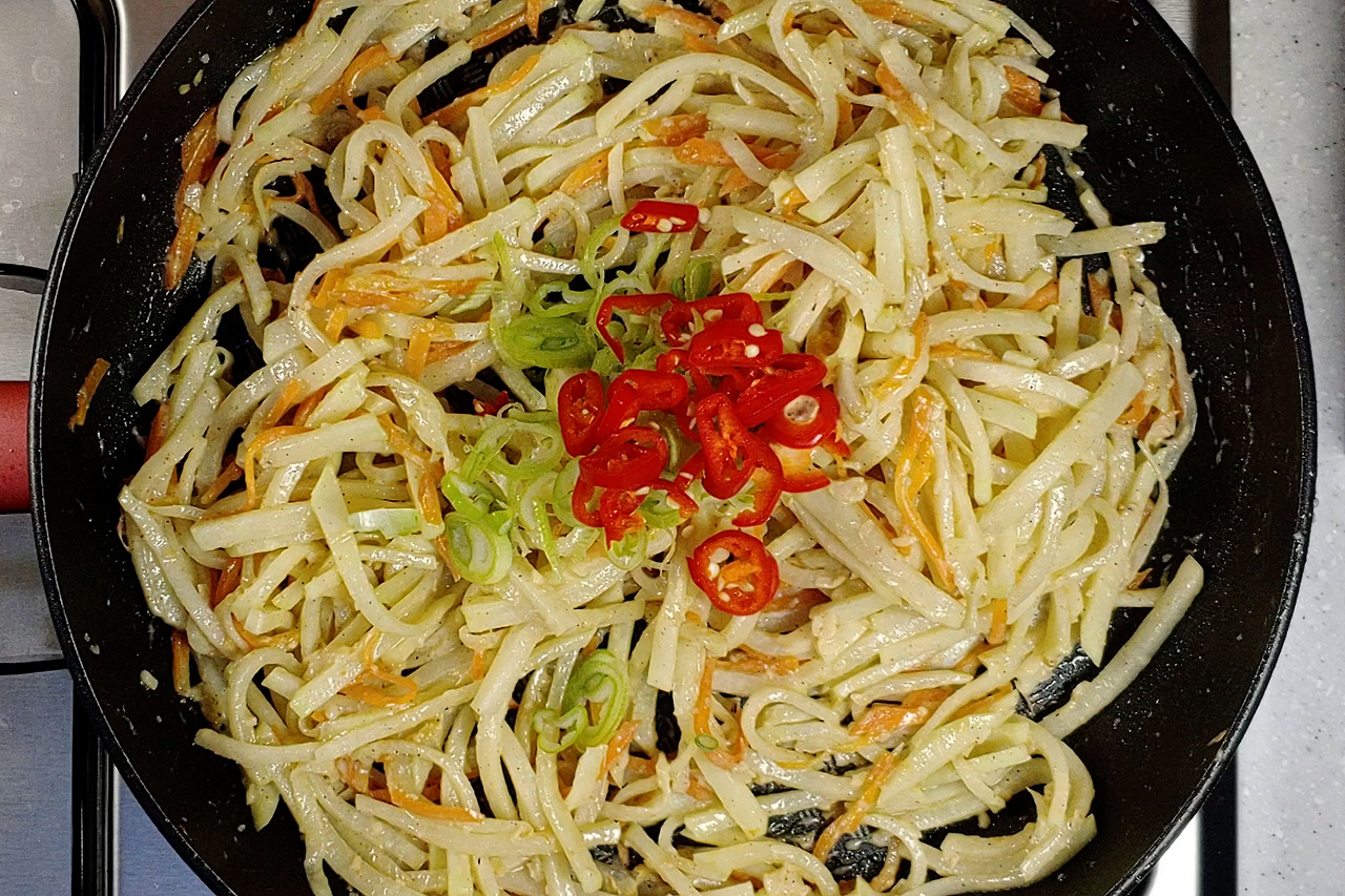 당근은 더 가늘게 채썰어주세요.