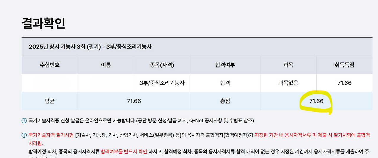 중식조리기능사 필기, 남편이 받은 점수는 71.66점. 합격 점수는 60점 이상이다. 이렇게 되면 아주 열심히 공부해서 90점 받은 나는 뭐가 되는 건가? 특히나 대학교 전공과목으로 배운 내용도 많이 겹치는데.