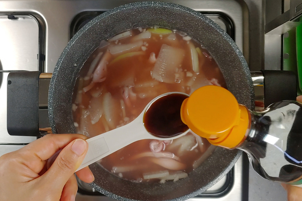 Tip 2. 오징어의 기본 간에 짜지 않게 국간장 1큰술로 간하기