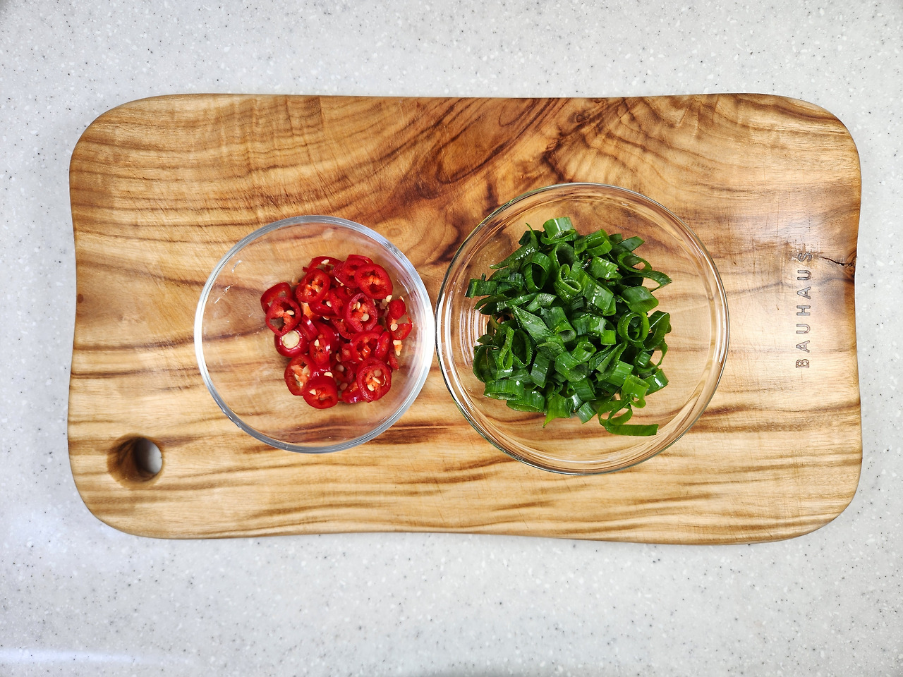 대파와 홍고추는 송송 썰어 준비합니다. 홍고추는 장식용으로 많이 쓰지만 그래도 마지막에 넣으면 비린내도 사라지고 향이 좋아지더라고요.