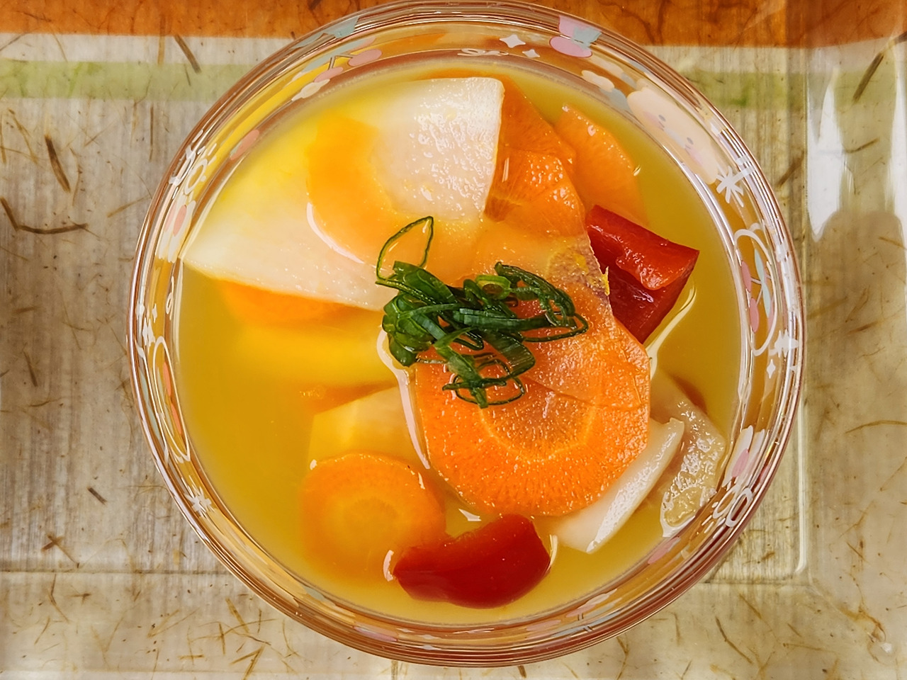 Tip: 당근과 무는 얇게 썰수록 천혜향 국물이 더 잘 배어요.