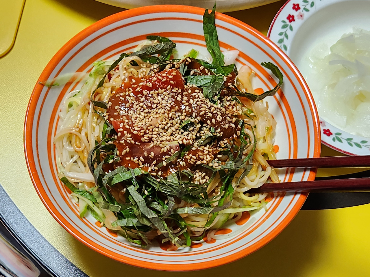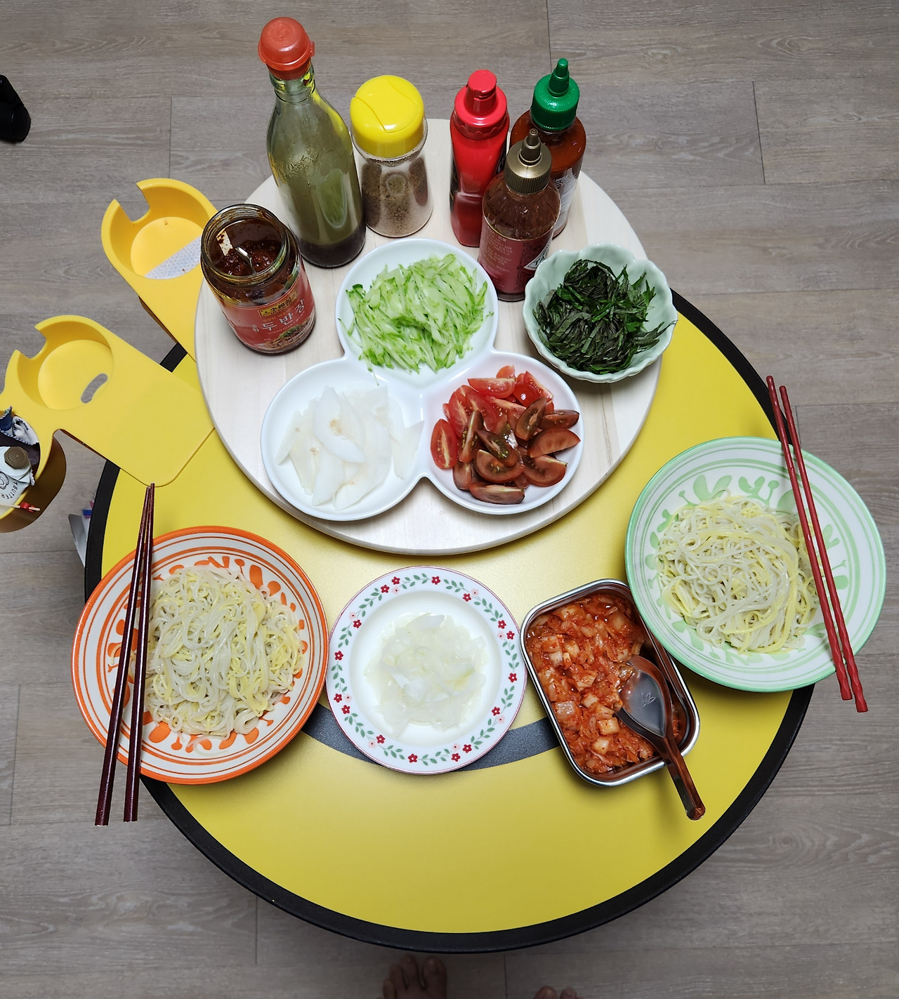 이러면 비빔장과 고명은 자기 입맛대로 올려먹는다. 셀프비빔국수 시스템. 남편은 맞춤형 레시피를 좋아한다.