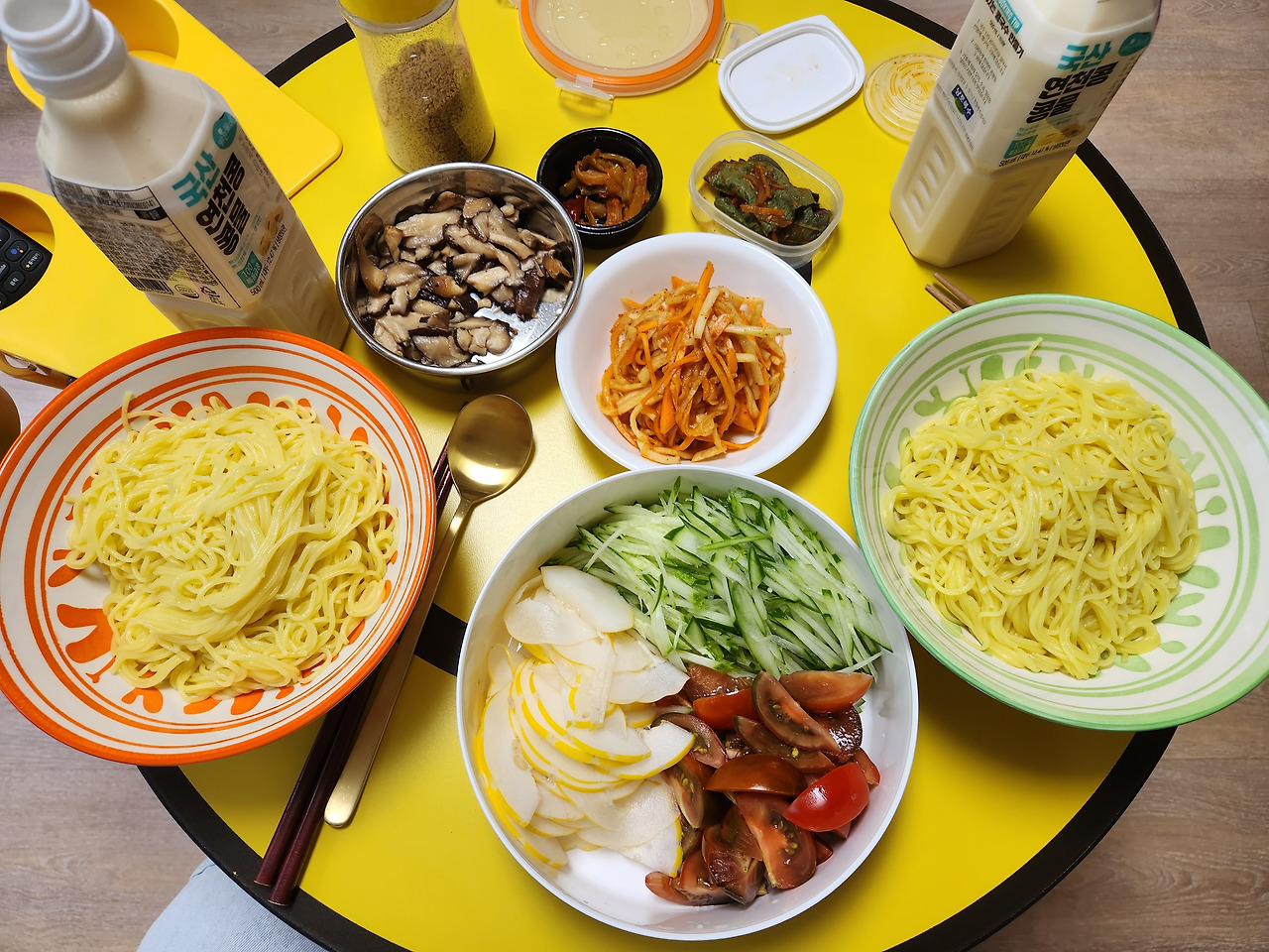 오늘 점심엔 남편이랑 콩국수 끓여먹음. 이것도 셀프 시스템. ㅋㅋㅋ