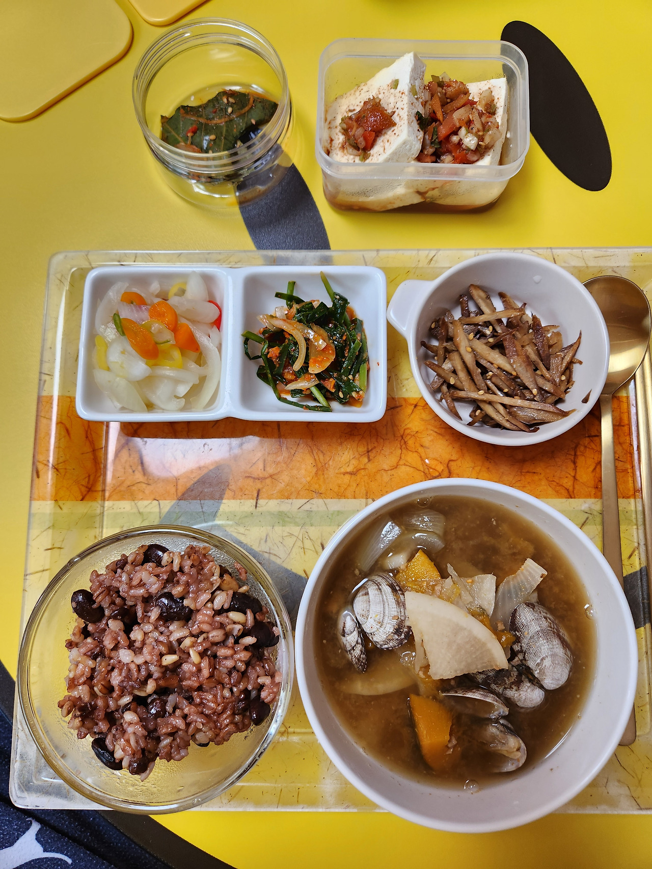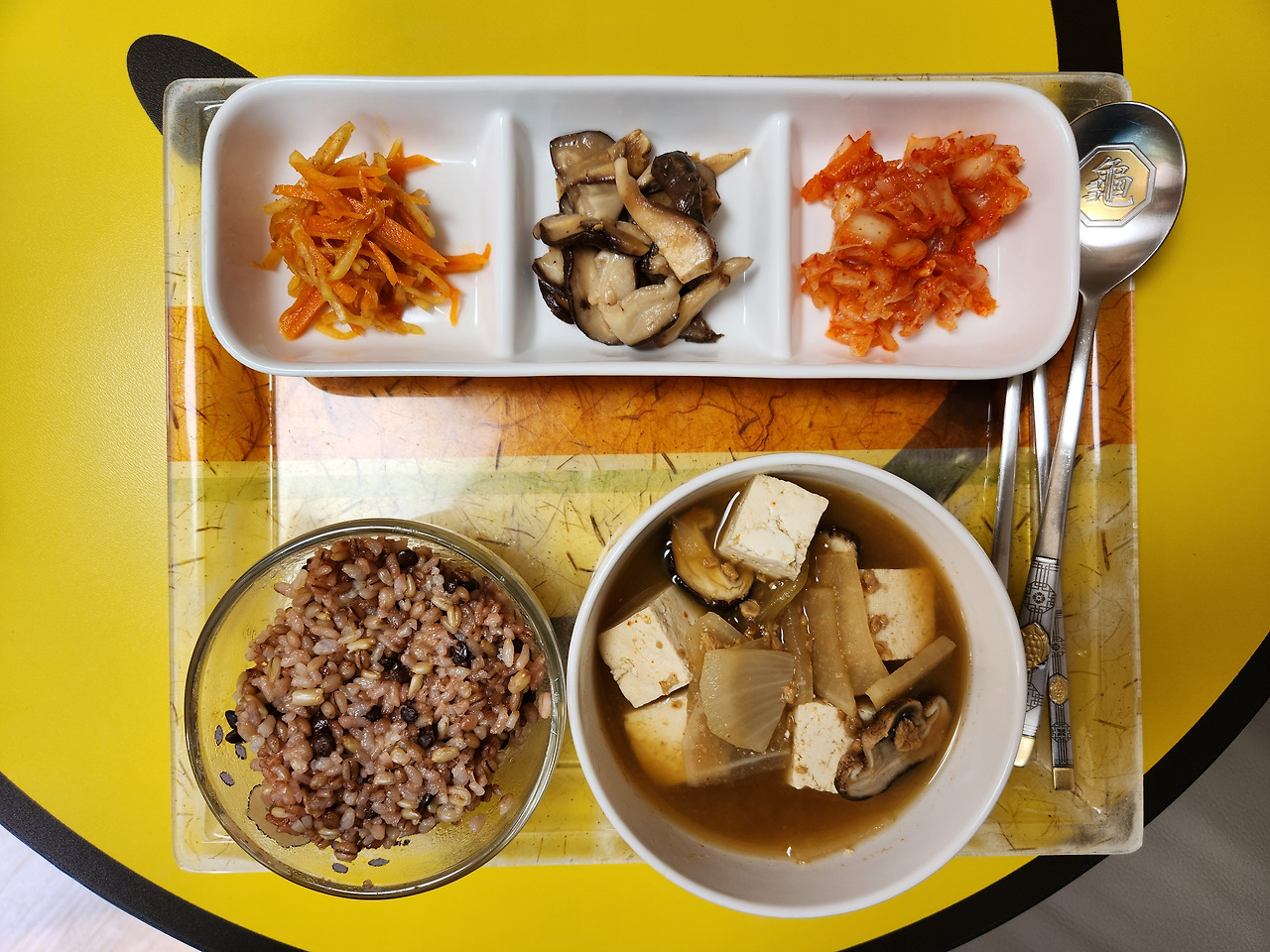 따로 된장국을 끓여서 채소 반찬들과 먹는다. 얼마전에는 아가들이 먹는 순한 비건김치를 샀다. 시댁 김치는 매운 고춧가루를 써서 끝맛이 엄청 맵다. 맵찔이인 나는 얼마전 위경련으로 응급실에 실려가면서 결국 순한 김치를 사먹기로 했다.