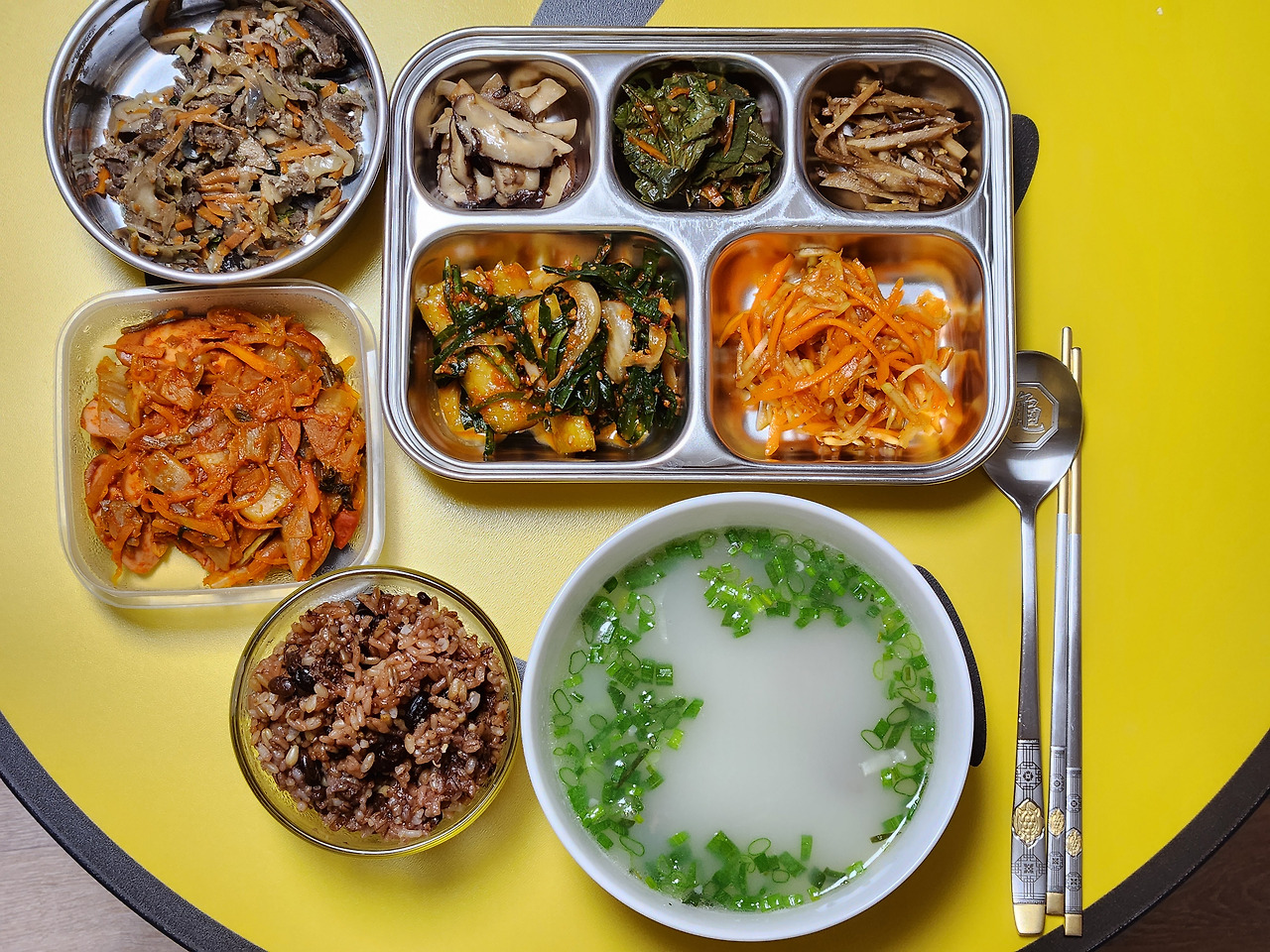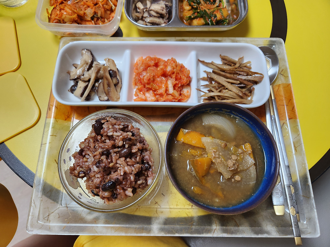 두부된장찌개, 버섯된장찌개. 여러 찌개와 국들을 번갈아 가며 끓이는 것도 일이다. 남편과 같이 사골국물을 먹었으면 좋겠는데. 국물도 별로고 특히 환자식인 정성스런 사골국물을 온전히 남편에게 양보하고 싶다.