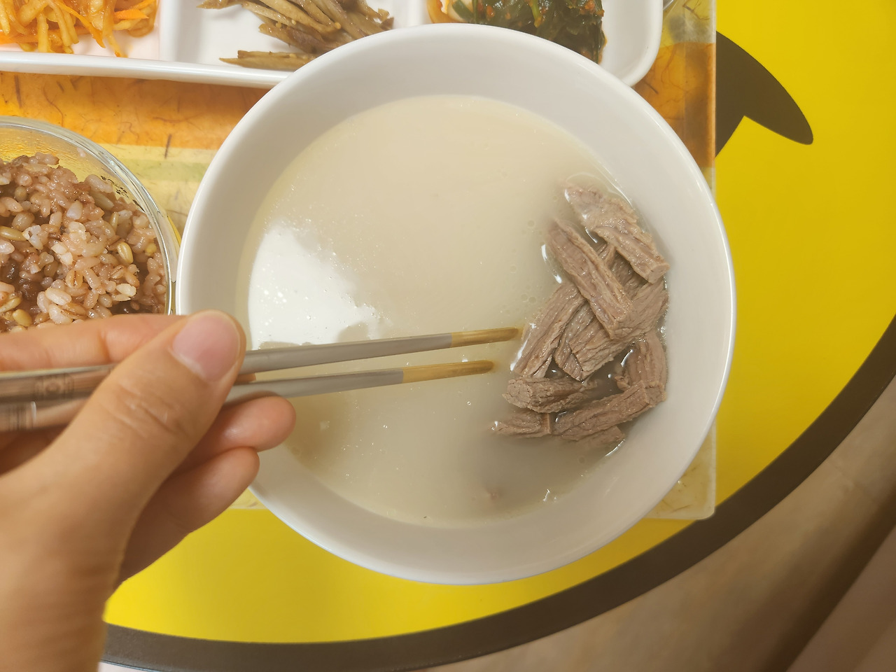 어머님이 손으로 직접 찢어주신 고기가 엄청 많이 들어있었다. 남편이 이 사랑 가득한 고깃국물을 먹고 얼른 기운차렸으면 좋겠다.