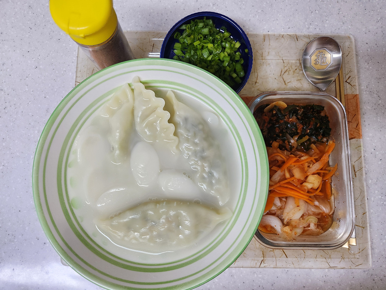 저번에는 사골국이 지겨울까봐 떡만두국으로 끓여줬더니 정말 잘만 먹더라. 나는 이때 속이 좀 더부룩해서 옆에서 커피를 마시고 있었는데 남편 먹는 모습이 참 맛있어보였ㄸㅏ.