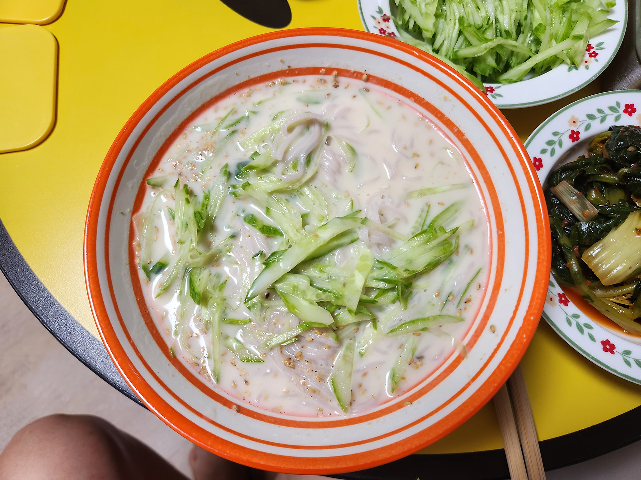어떤 날은 오이가 가득 들어간 콩국수도 먹고.