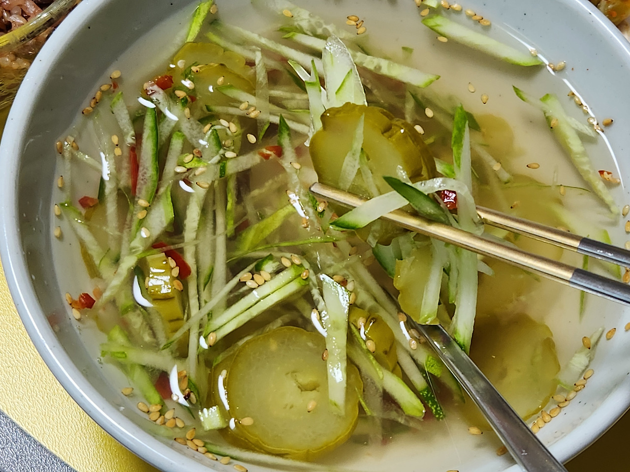 남편의 사골국처럼 마르지 않는 오이지냉국.