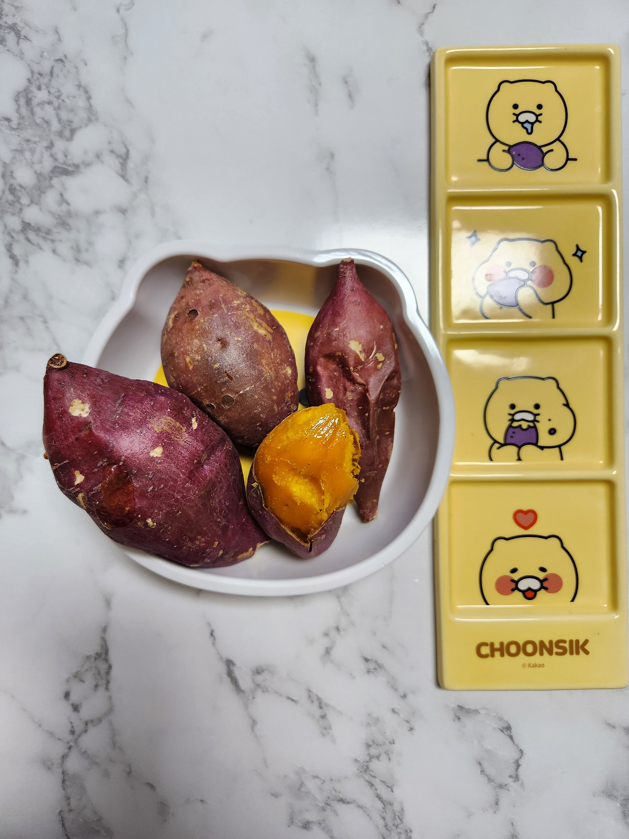 빵돌이인 남편에게 빵대신 고구마를 권해주고 있습니다. 다행히도 고구마 꾸워주면 춘식이처럼 고구마를 잘 먹습니다.