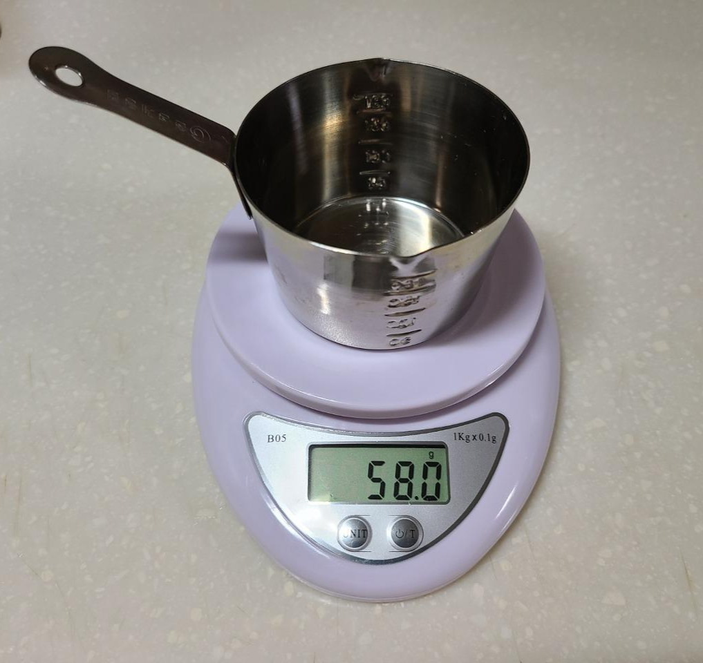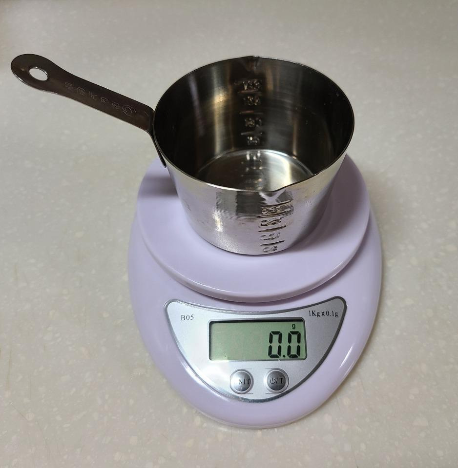 레시피에서 가장 중요한 것은 바로 식재료의 양입니다. 고체로 된 식재료들은 g단위로 측정하고, 간장, 식초, 물, 같은 액체는 ml단위로 측정합니다.