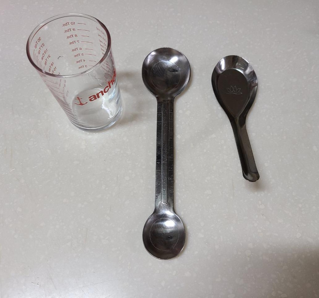 우리가 일반적으로 사용하는 1큰술은 1T(테이블스푼)과 동일한 부피고, 15ml입니다. 1작은술은 1t(티스푼), 5ml입니다.