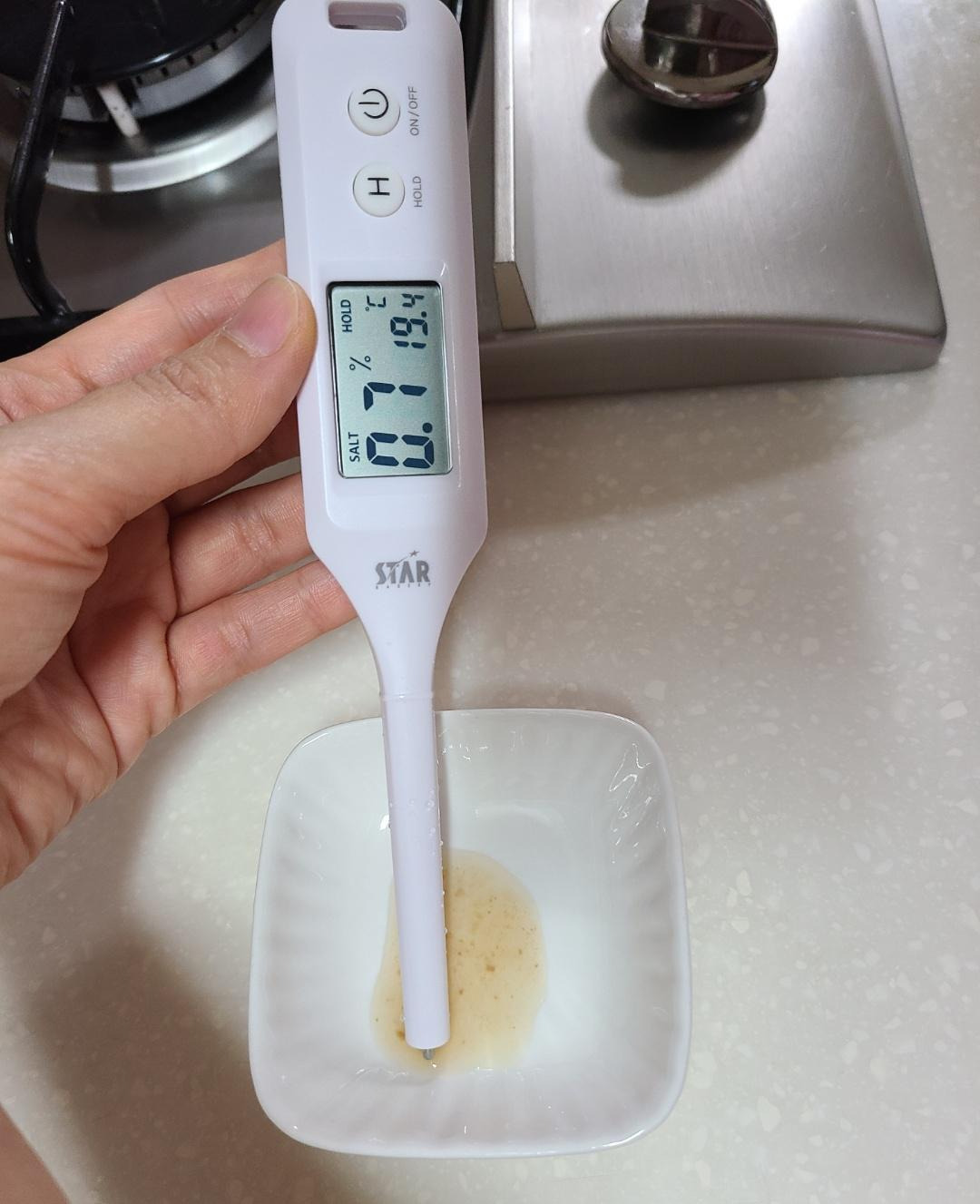 다행히도 제 입맛은 싱거운 맛에 맞춰져 있어서 '아! 이 정도면 적당하겠다!' 싶어서 염도계로 측정하면 확실히 저염이거나 보통 염도더라고요. 하지만 저도 제 혓바닥을 순화 시키기까지 많은 노력과 훈련(?)이 있었습니다.