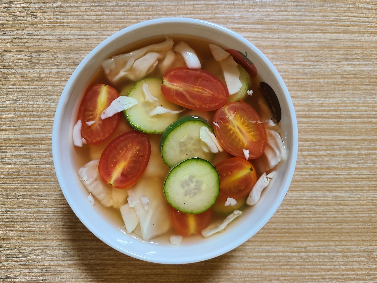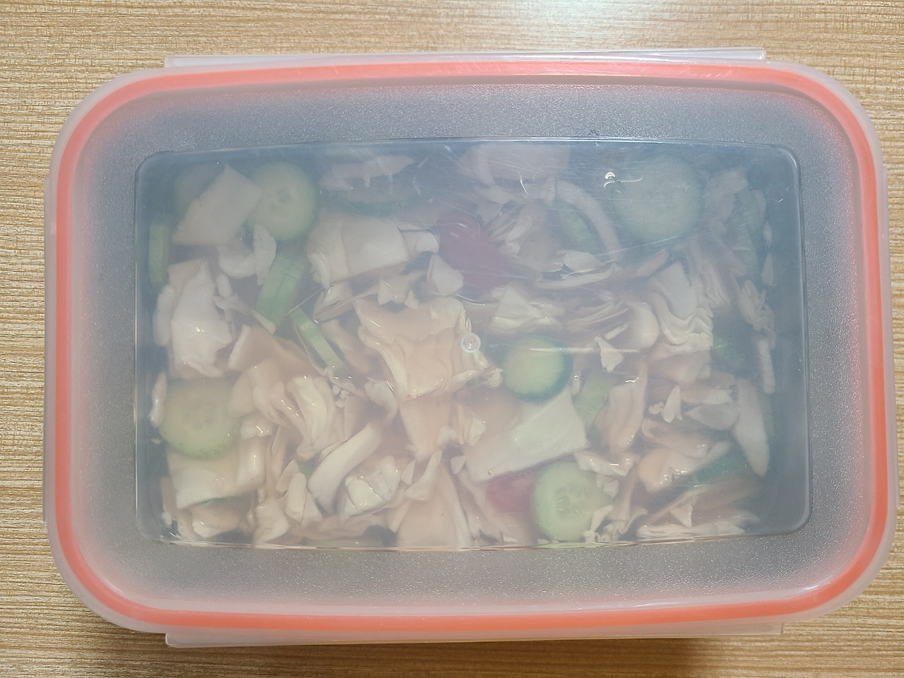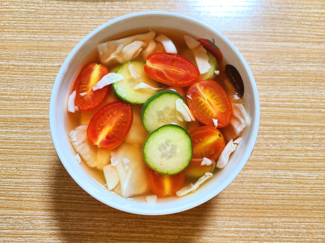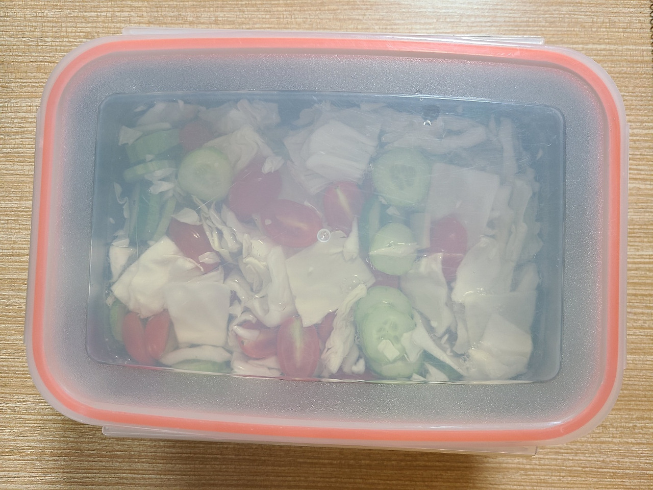 하루만에 익지는 않아서 채소가 푹 익지는 않았지만 2~3일 정도 지나면 양배추가 잘 익어서 단맛이 더 나고 새콤한 맛이 더 잘 밸거라는 생각이 들었어요.