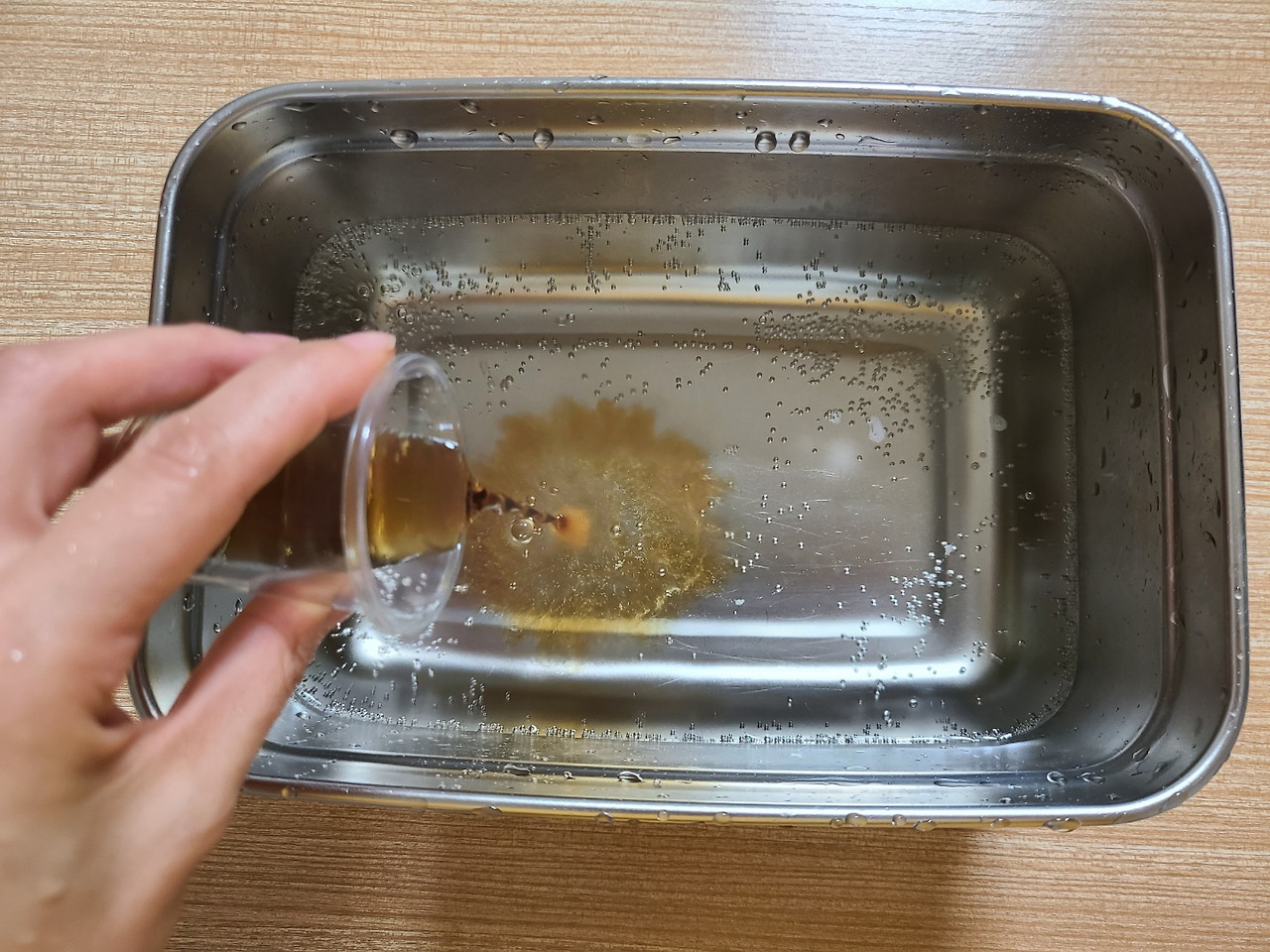 김치국물을 잘 섞어 준 뒤 2~3시간 동안 상온 보관하다가 냉장고에 넣어 줍니다.