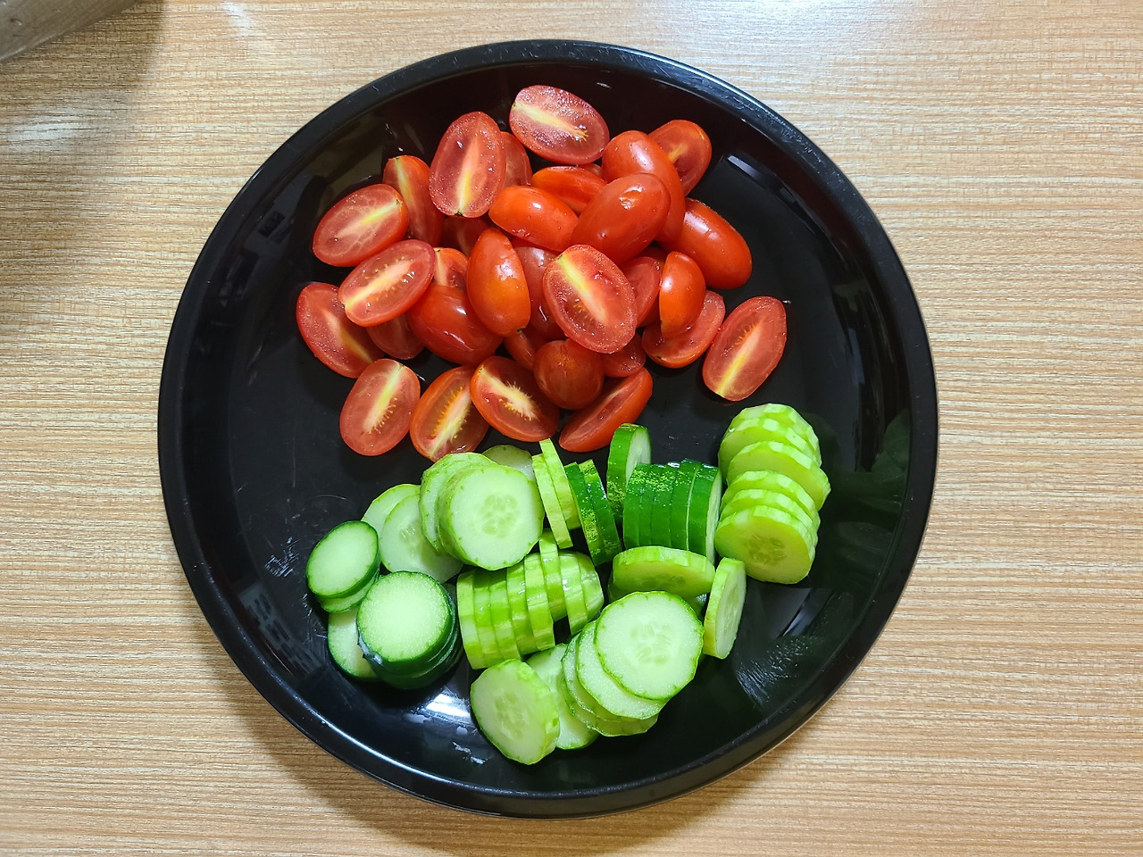 (양배추는 딱딱한 반면 오이는 상대적으로 무른 편이라 아삭하게 씹힐 수 있도록 조금 두껍게 썰어 줬어요.)