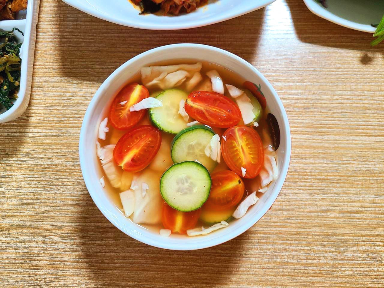 상콤한 방울토마토 물김치를 식사 시간에 올려 봤어요.