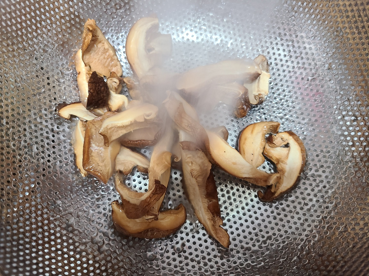 (말린 표고버섯은 먼지만 떼어낼 정도로 살살 씻어준 다음 물을 2컵정도 넣어 불려주세요.)