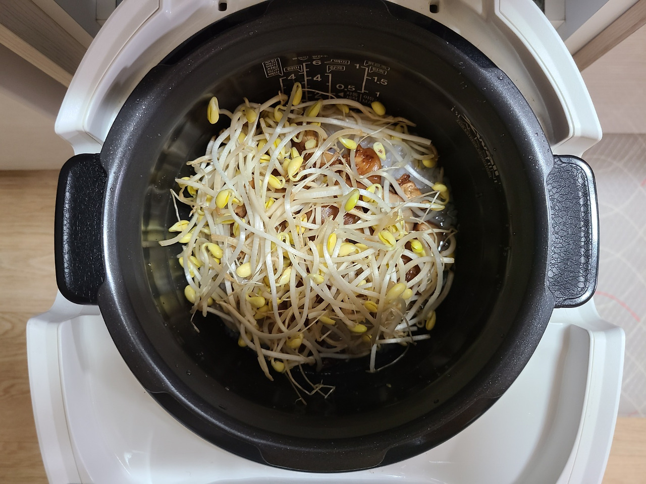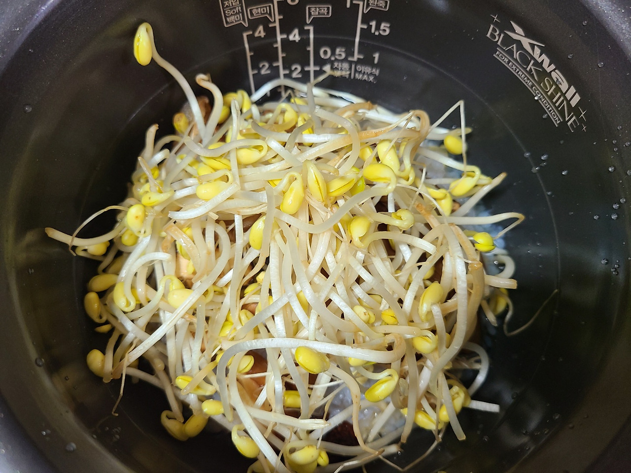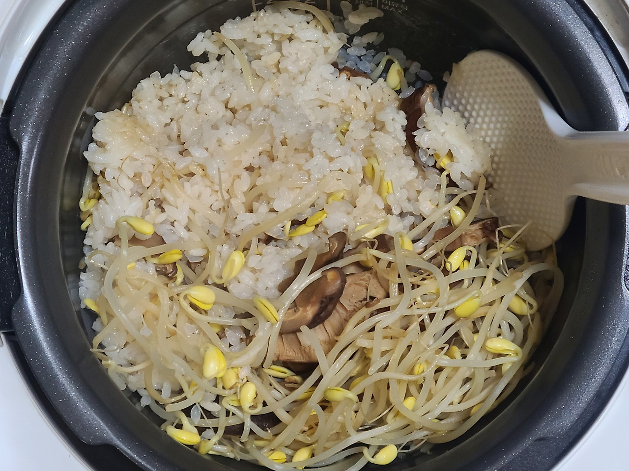 콩나물 비린내 하나 없이 오히려 콩나물 향과 표고버섯향이 잘 어우러져서 밥 짓는 내내 좋은 냄새가 가득했어요.