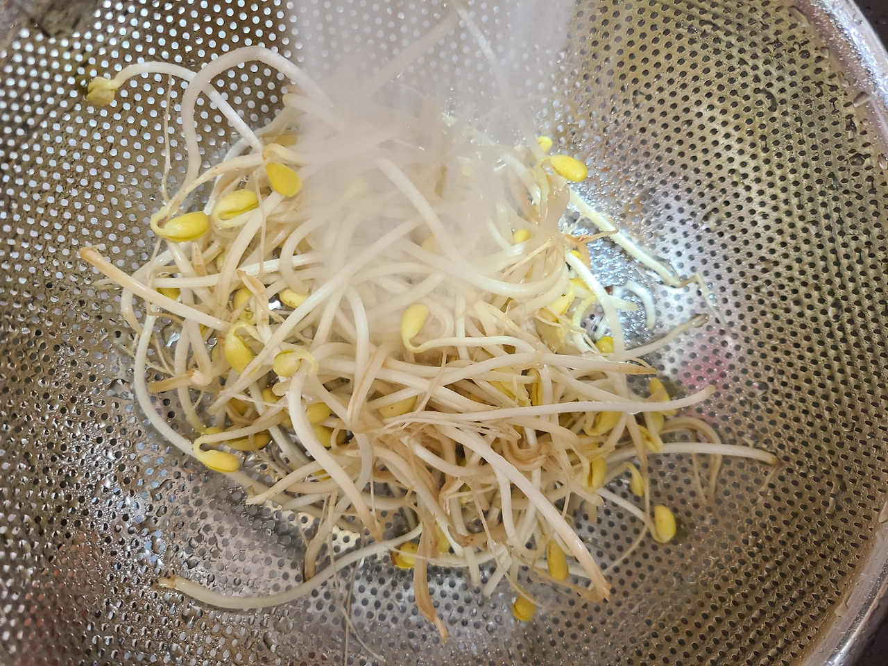 콩나물도 잘 씻어서 물기를 털어줍니다.