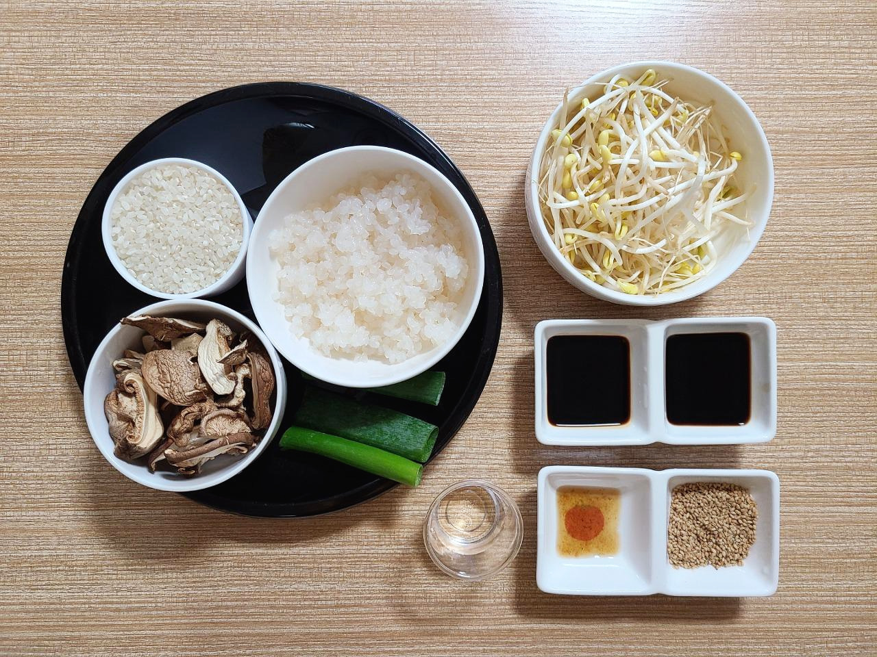 (곤약쌀, 콩나물, 불린 표고버섯 등 촉촉한 재료가 들어가기 때문에 물양은 평소보다 살짝 모자르게 넣어주세요.)