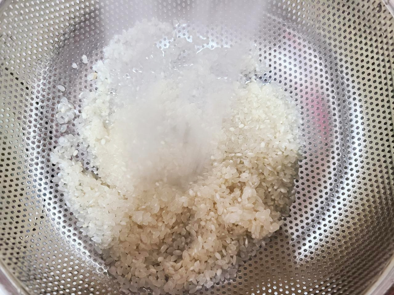 쌀은 흐르는 물에서 투명한 물이 나올 때까지 살살 씻어 주고 곤약쌀도 흐르는 물(찬물)로 살살 씻어 주세요.