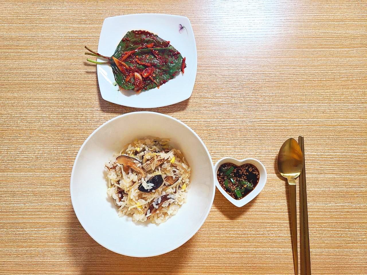 저는 날씨가 쌀쌀해지면 표고버섯향이 감도는 '표고버섯밥'이 먹고 싶어지는데요. 고소한 양념장에 쓱쓱비비면 나도 모르게 한그릇 뚝딱하게 되지요. 간단히 한끼를 떼울 수 있고 또 콩나물까지 넣으면 아삭아삭 씹히는 맛이 정말 맛있어요.