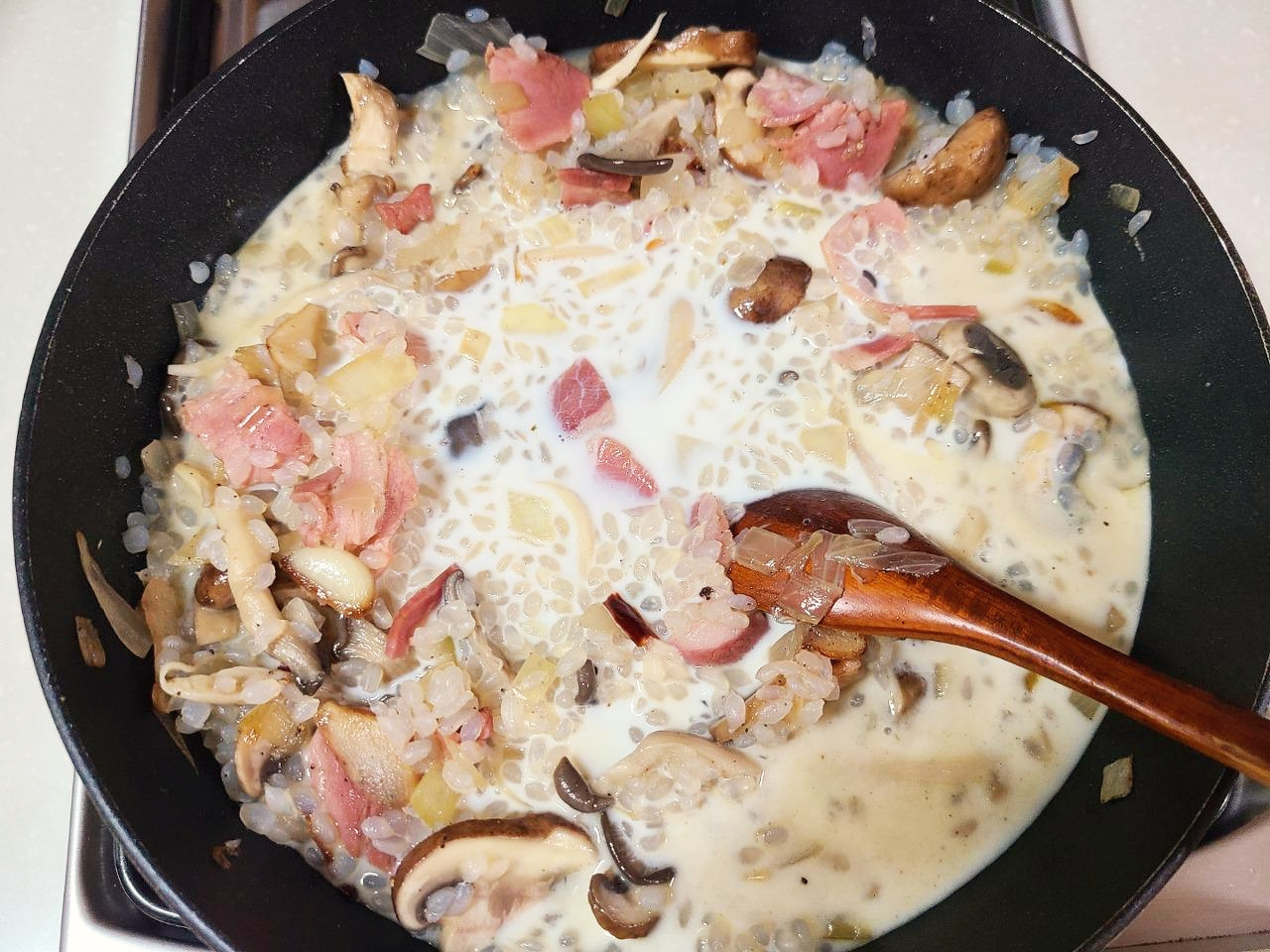 우유가 자작하게 졸아들면 불을 끄고 마무리합니다.