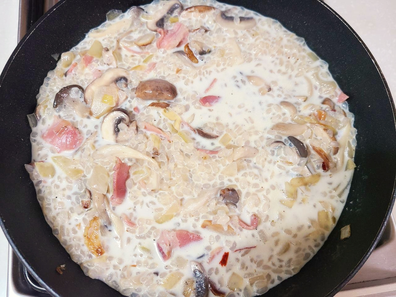이탈리안 레스토랑을 갈까 하다가 어차피 쌀이 들어가서 많이 못 드시느니 차라리 집에서 '건강하게' 만들어 드리고 싶어서 곤약쌀로 만들게 되었어요. 당뇨 관리를 하시는 어머님을 위해 '유당제거' 우유를 사용해서 곤약쌀 리소토를 만들거예요.
