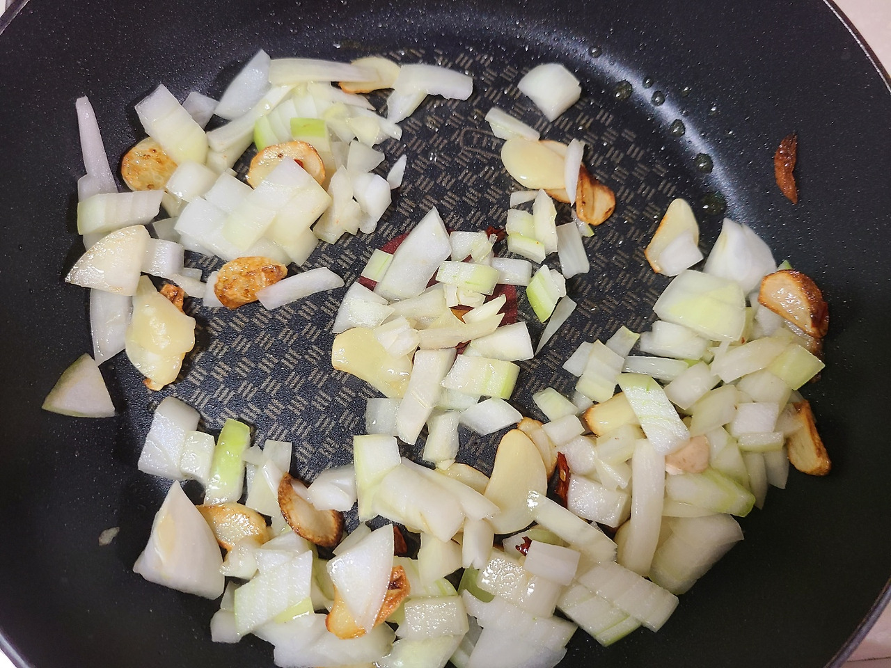 베트남고추를 넣어 볶다가 양파를 넣고 볶아줍니다.