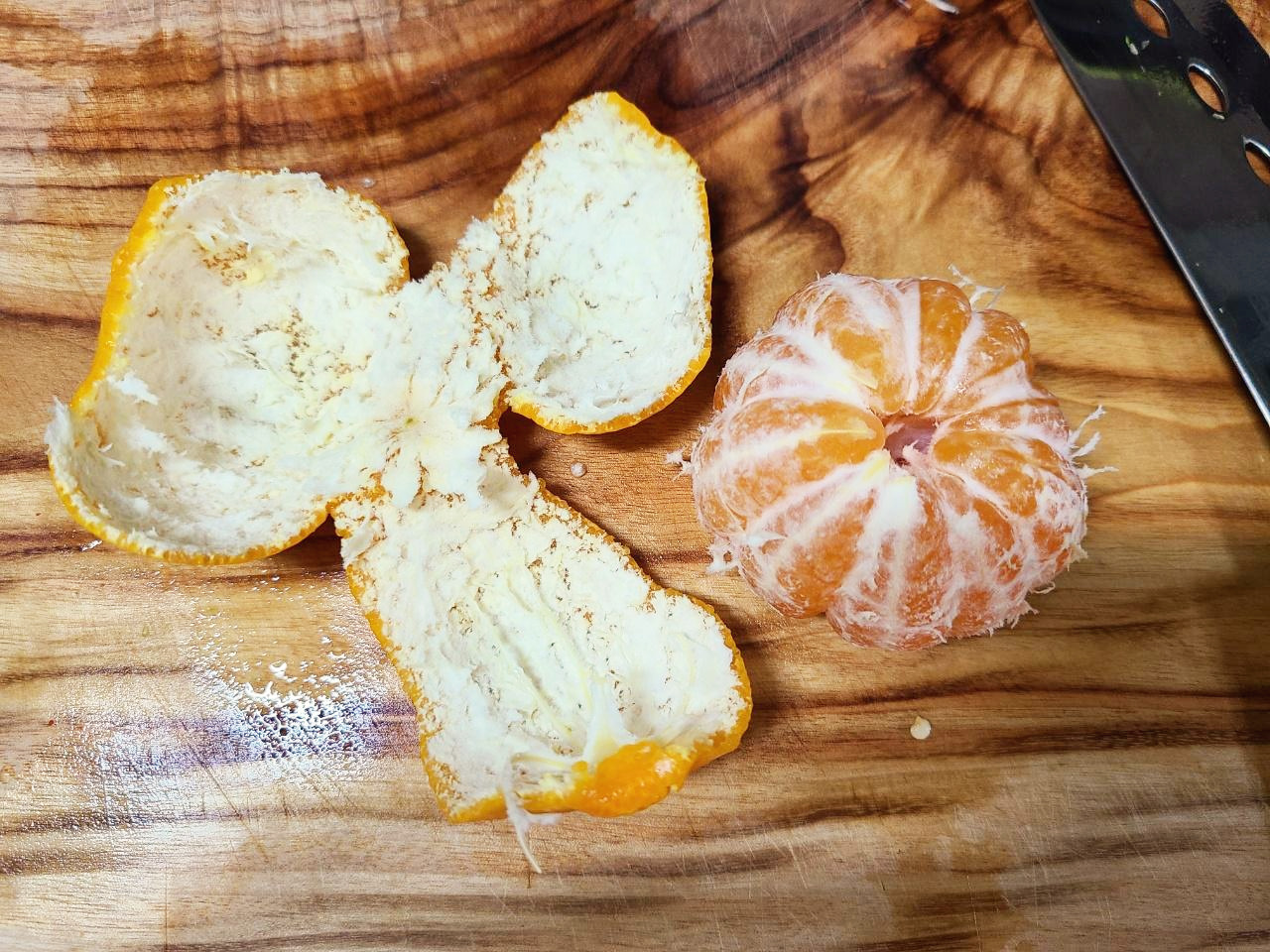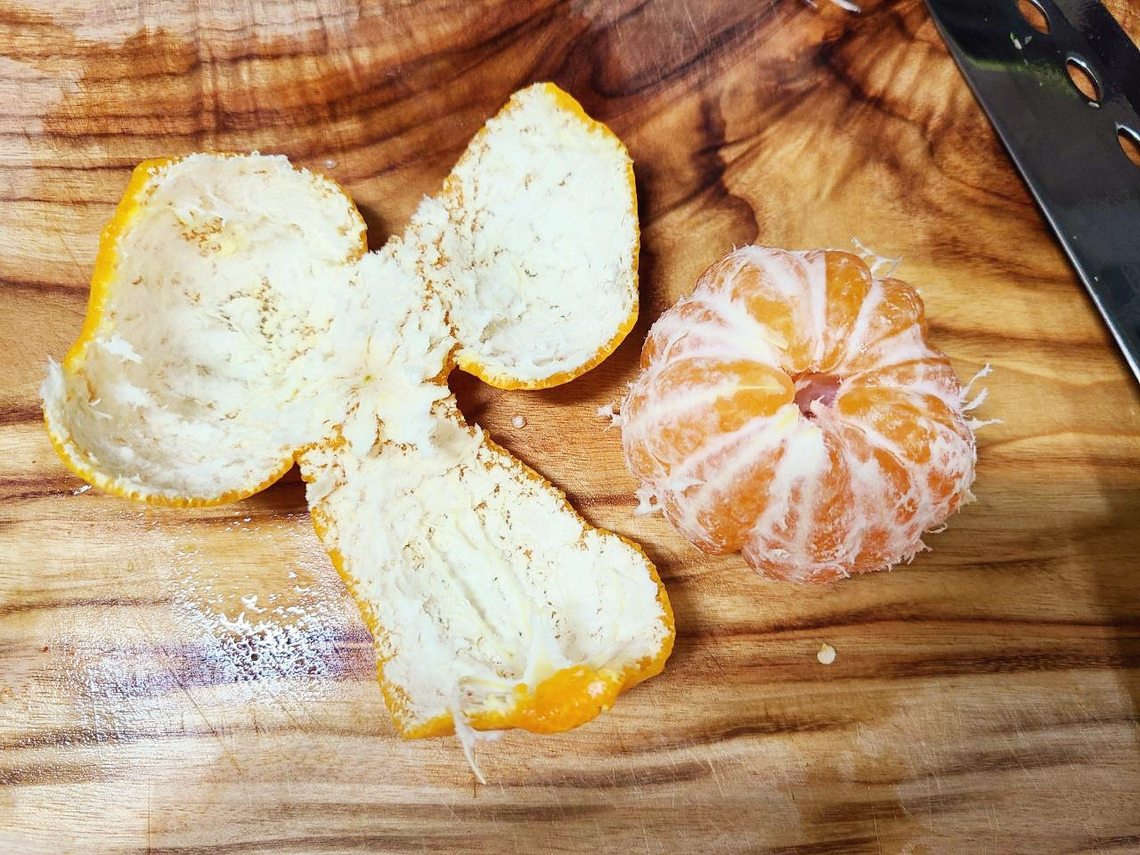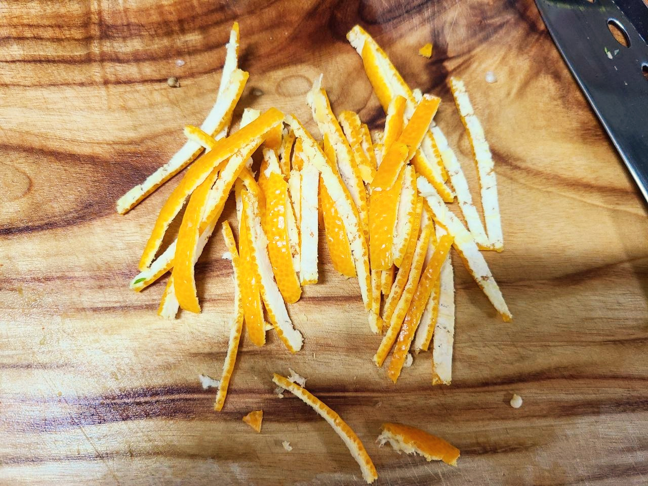 감귤은 껍질을 깐 다음 반정도를 채썰어 줍니다.