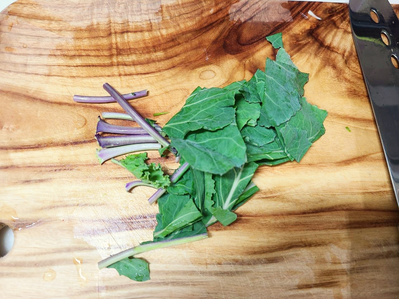 (가장 큰 잎사귀는 보쌈 장식용으로 활용할거라 김치양념에 넣지 않습니다.)