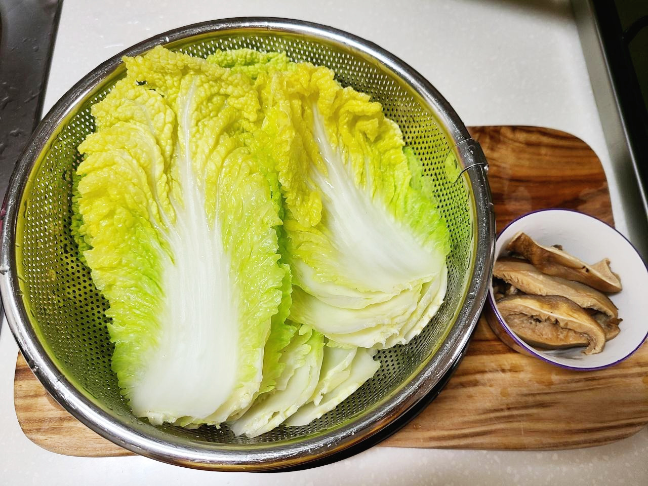 배춧잎은 넓은 그릇에 펼쳐놓고 표고버섯도 꺼내서 식혀줍니다.