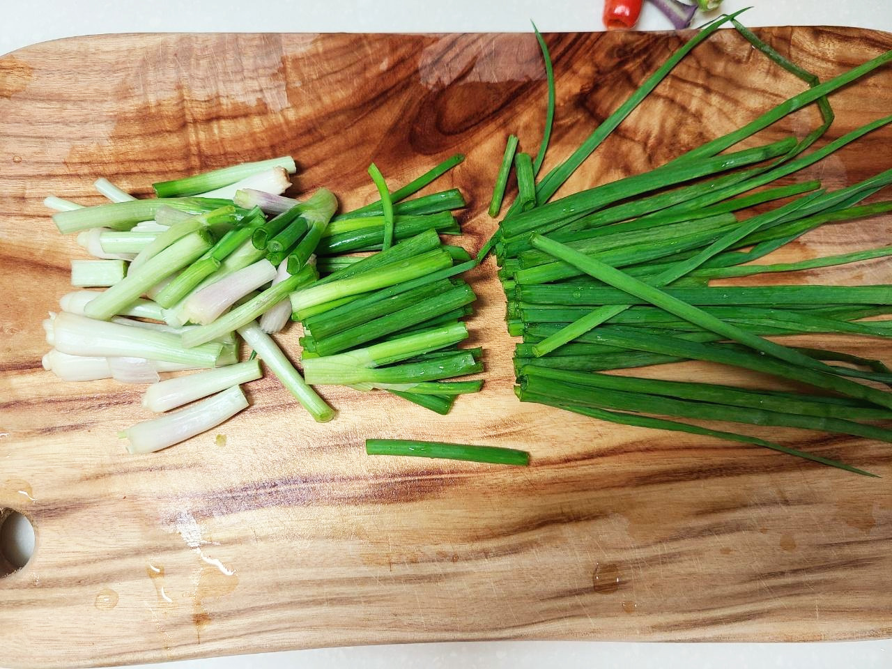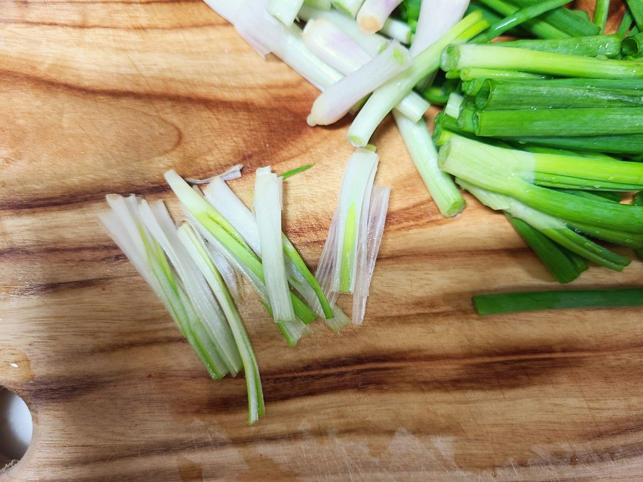 쪽파는 3cm 길이로 잘라주고 두꺼운 부분은 반을 갈라서 준비합니다.