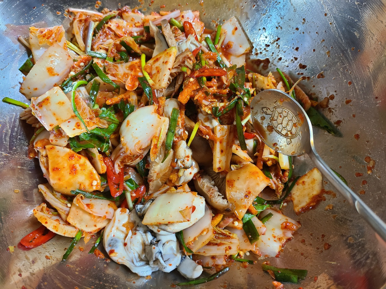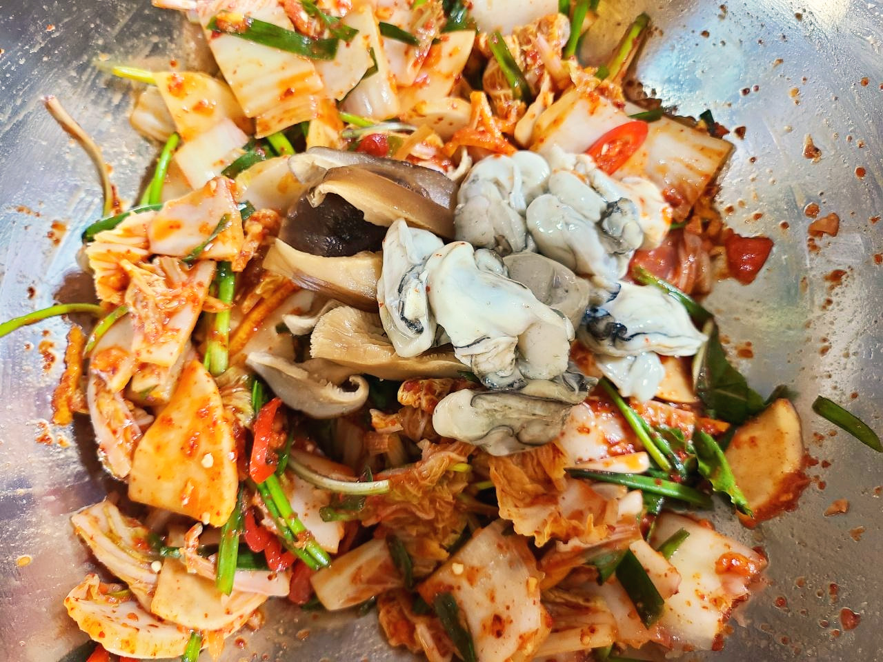 (굴 같은 어패류는 김치를 담그는 동안 가급적 냉장실에 보관하다가 사용직전에 꺼내시는 게 좋습니다. 레몬즙에 담궈 놓으면 맛이 더 좋습니다.)