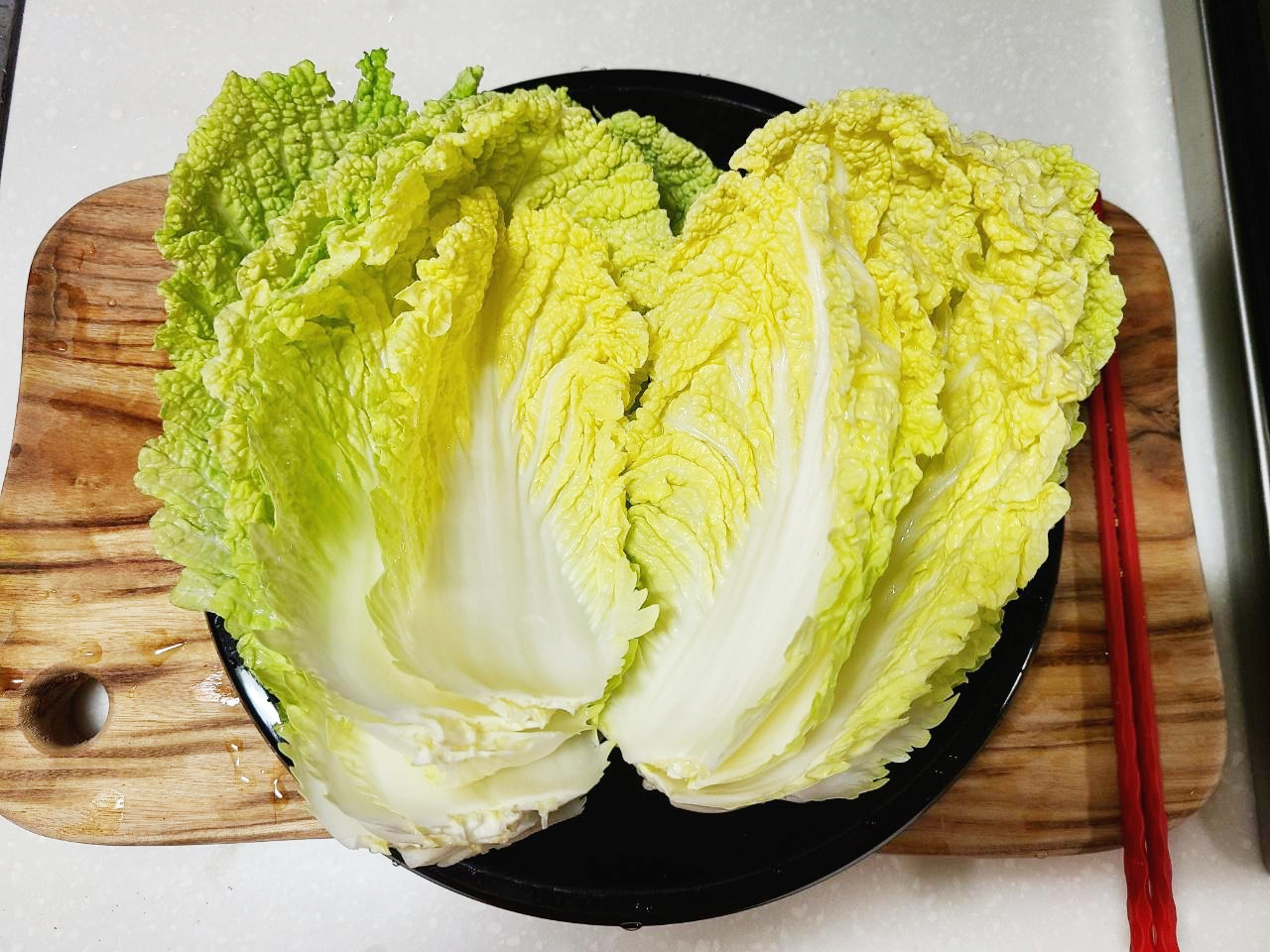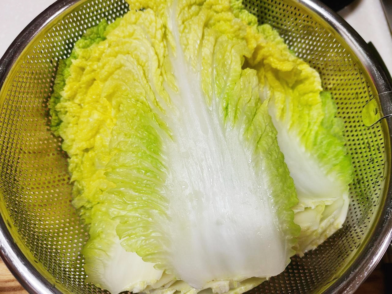 식약처 저염레시피 기준 배추 600g에 소금 20g을 넣어 절여주게 돼있는데 저는 이 과정을 생략하고 대신 표고버섯 우린물에 배추를 살짝데쳐 사용할겁니다.