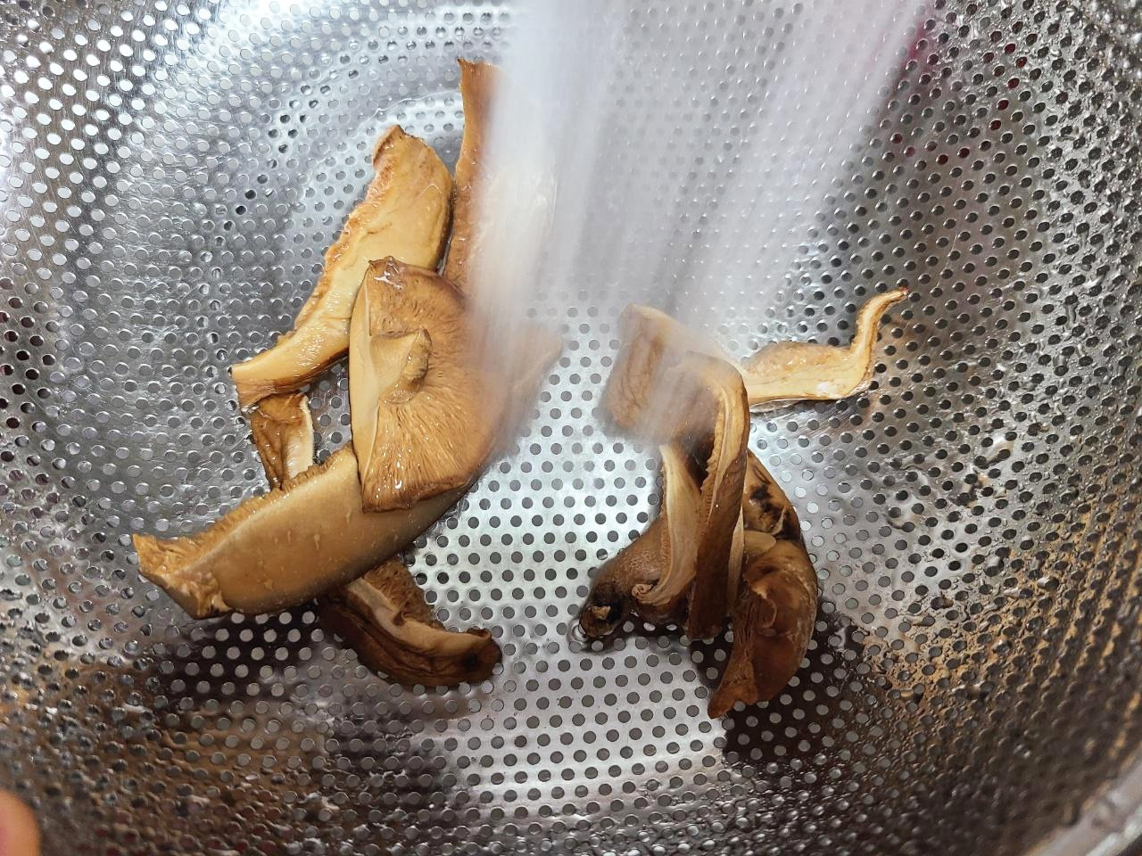 말린 표고버섯은 잘 씻어서 배추 데칠 물에 넣어 줍니다.