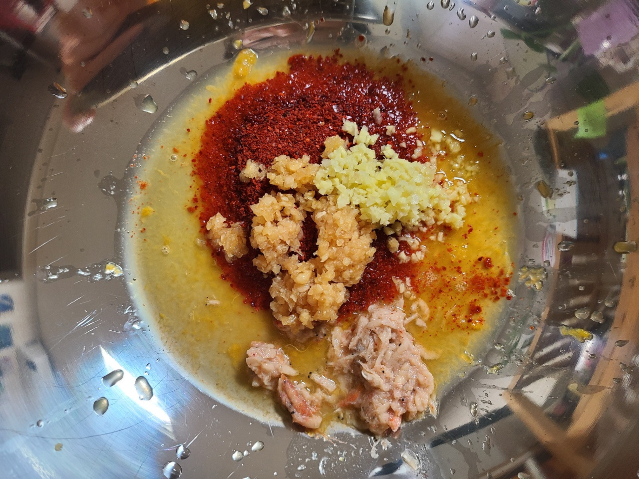 고춧가루 30g, 새우젓 20g, 다진마늘 20g, 다진생강 5g,