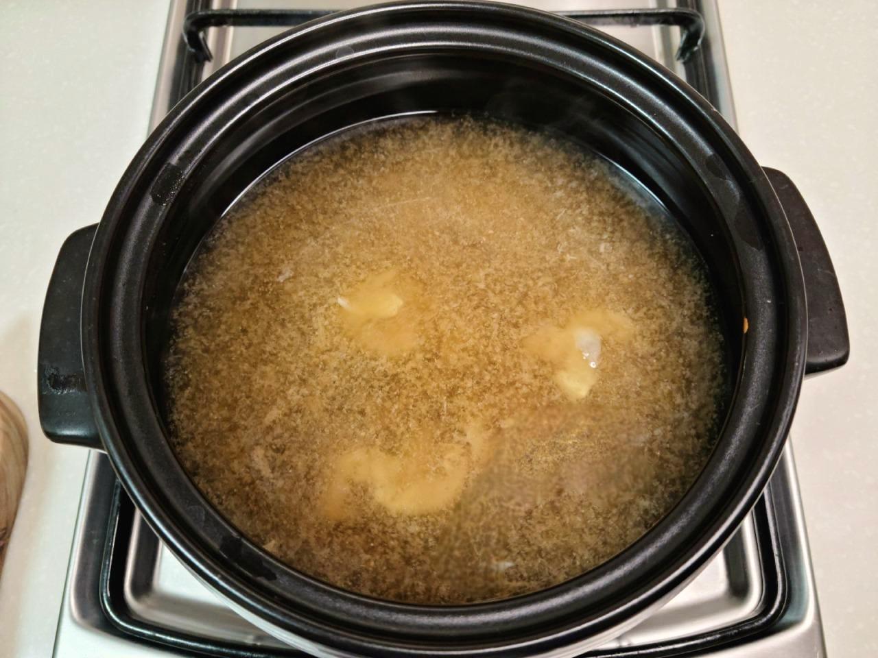 냄비에 물 500ml를 넣고 끓어 오르면 된장, 다진마늘을 넣고 잘 저어줍니다.