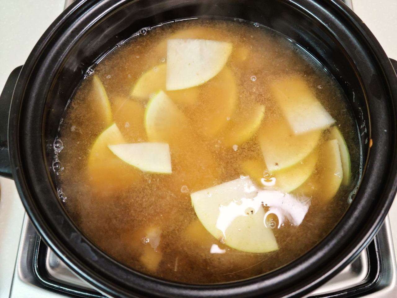 뚜껑을 덮고 약불로 끓이다 애호박이 어느정도 익으면