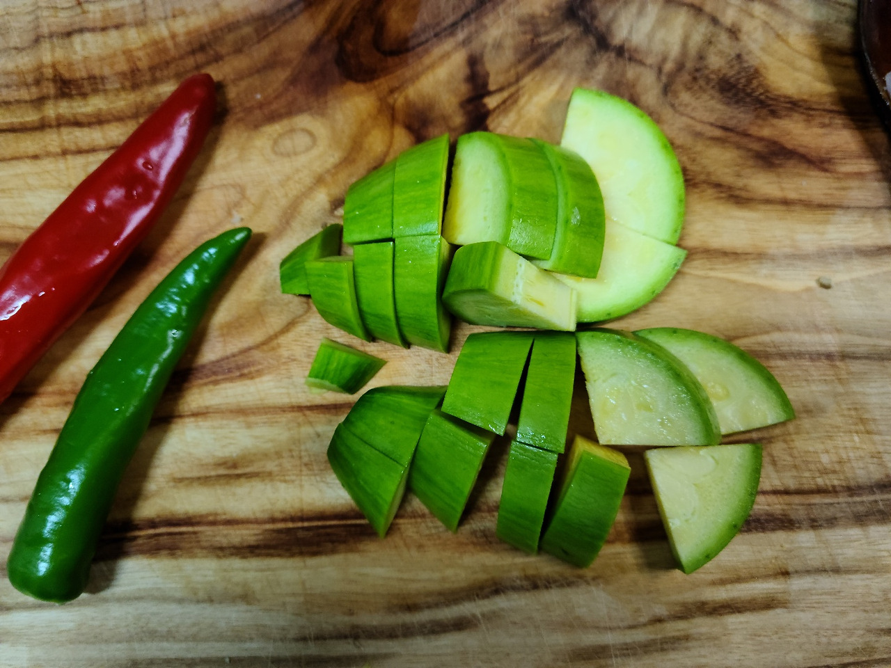 다진마늘 10g, 홍고추 1/2개, 청양고추 1/2개