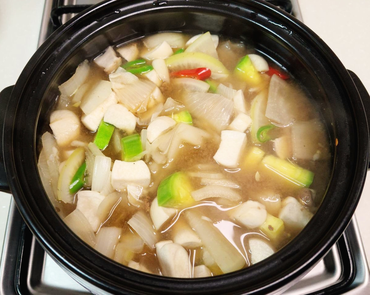 양파, 애호박 등 채소의 비중을 높여서 자연스런 단맛을 낼거고 두부, 새송이버섯도 듬뿍 넣어 건강하면서도 맛있는 청국장찌개를 끓여 볼겁니다.
