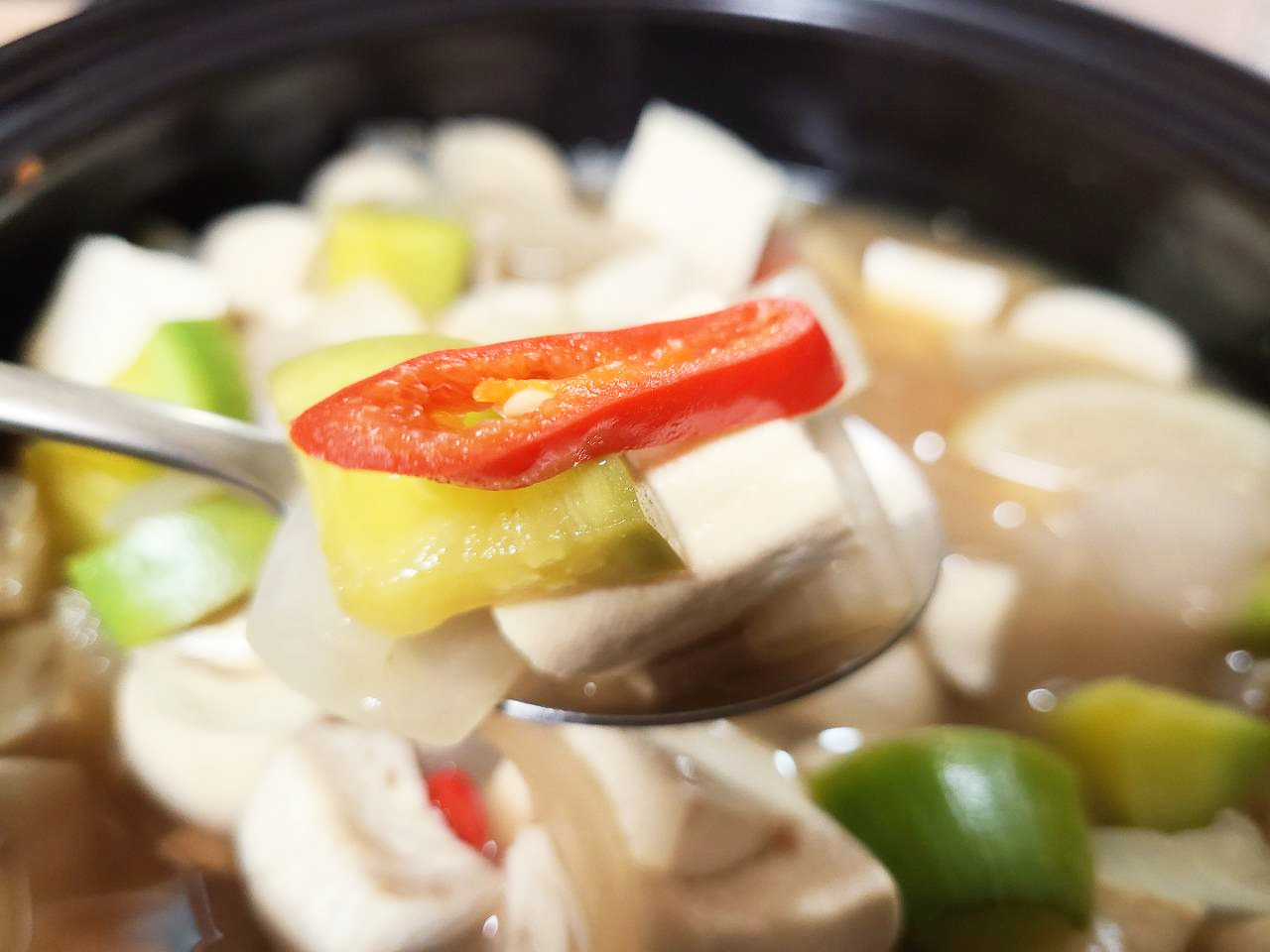다양한 채소를 푸짐하게 넣으면 짜지 않고 맛있게 먹을 수 있어요. 저칼로리 식품인 두부, 버섯의 비율을 높였는데 이런 건더기 위주로 드시면 더 건강하게 드실 수 있답니다.