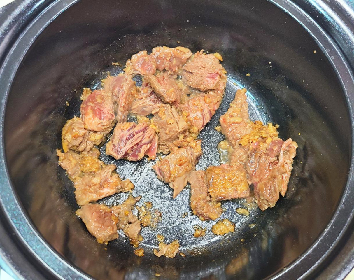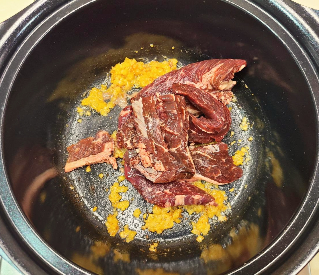 (고기 국물이 잘 우러나도록 너무 바짝 익히지 말고 핏기가 돌도록 겉면만 익혀주세요.)