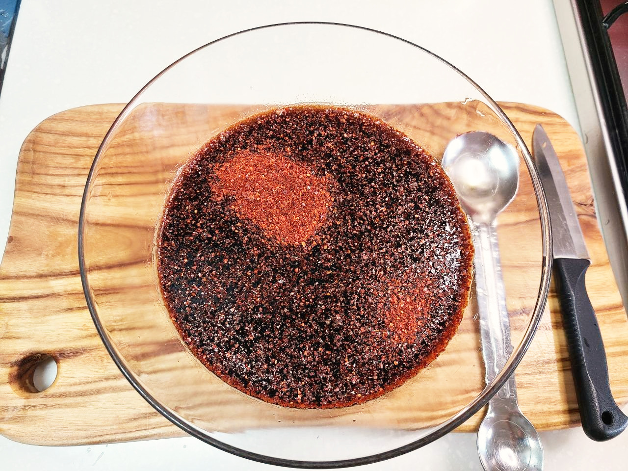 물 400ml에 간장, 발사믹식초, 고춧가루를 넣고 양념장을 만들어줍니다.
